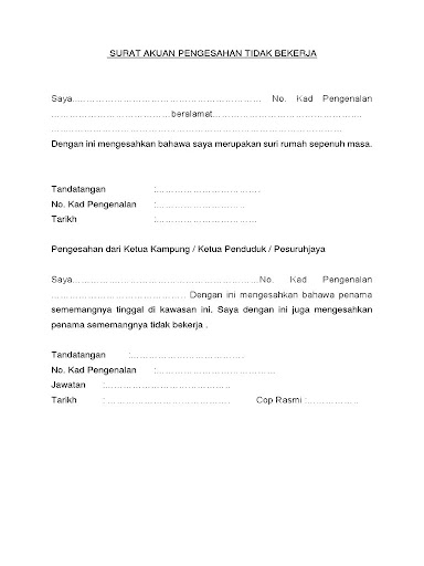 Surat pengesahan tidak bekerja suri rumah pdf.